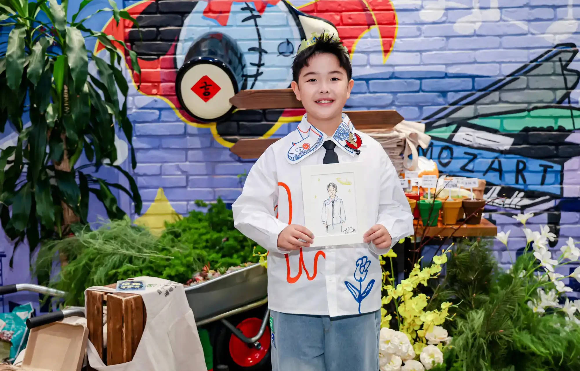 陈奕橦(朵朵)举着自己的画像拍照,笑容灿烂,心情大好。
