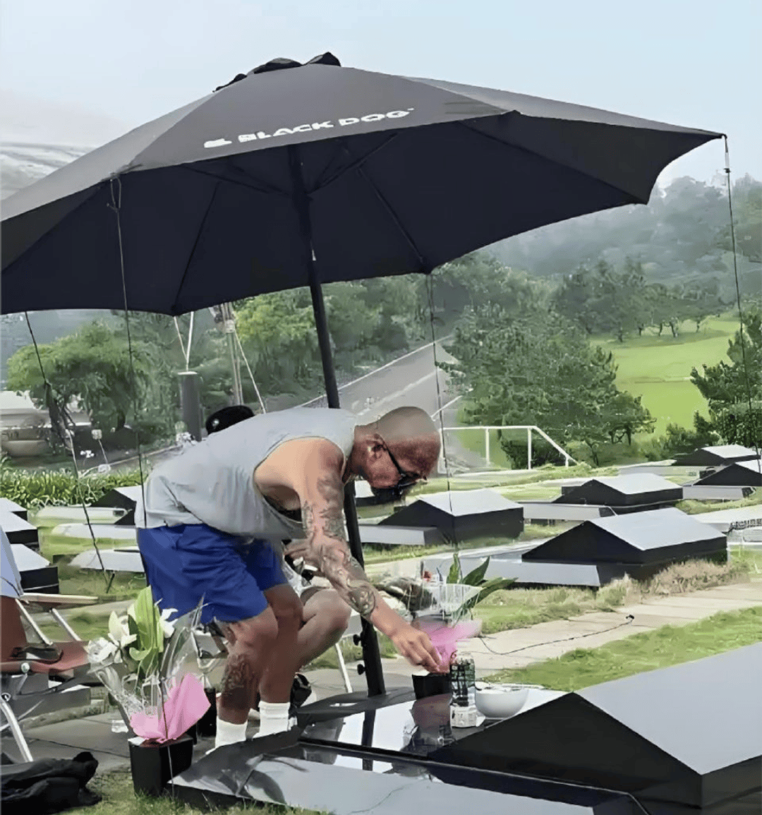 节目组提前蹲点,就等具俊晔来墓园“表演”。当天台北下着瓢泼大雨,编导心里暗喜:“这天气,具俊晔肯定鸽了!”结果人家顶着暴雨,拎着鲜花供品就来了,浑身湿透也不撑伞,仿佛在说:“看,我多痴情!”到了墓前,具俊晔直接行了个韩国最高规格的跪拜礼——双手匍匐、双膝跪地,额头贴着墓碑,肩膀一抖一抖的,嘴里还念叨着:“熙媛躺着更辛苦……”这画面,韩国主持人当场泪崩,演播室嘉宾集体红眼眶,连网友都忍不住吐槽:“这哪是守墓,这是拍《来自星星的你》番外篇吧?”