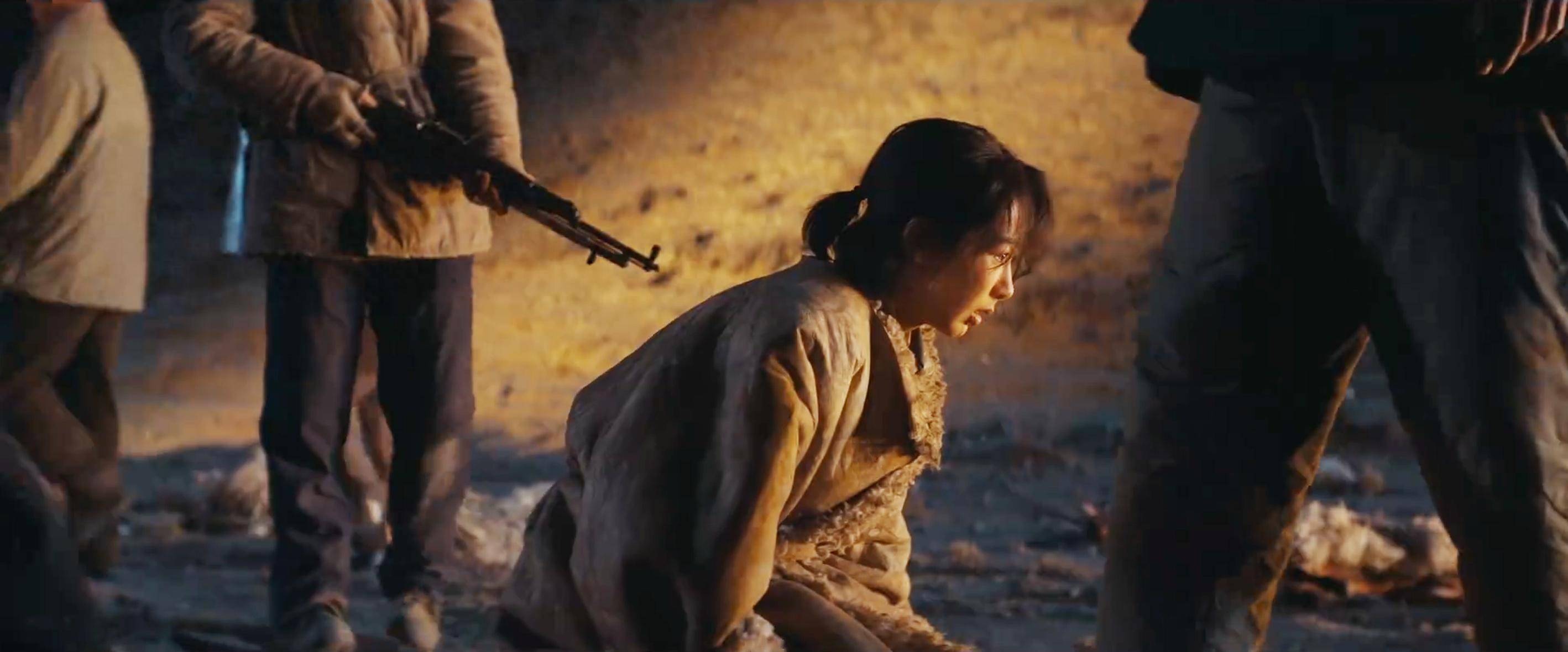 让人印象深刻的,是她和多智巴送资源偶遇盗猎团队,被抓下车差点打死的戏份。
