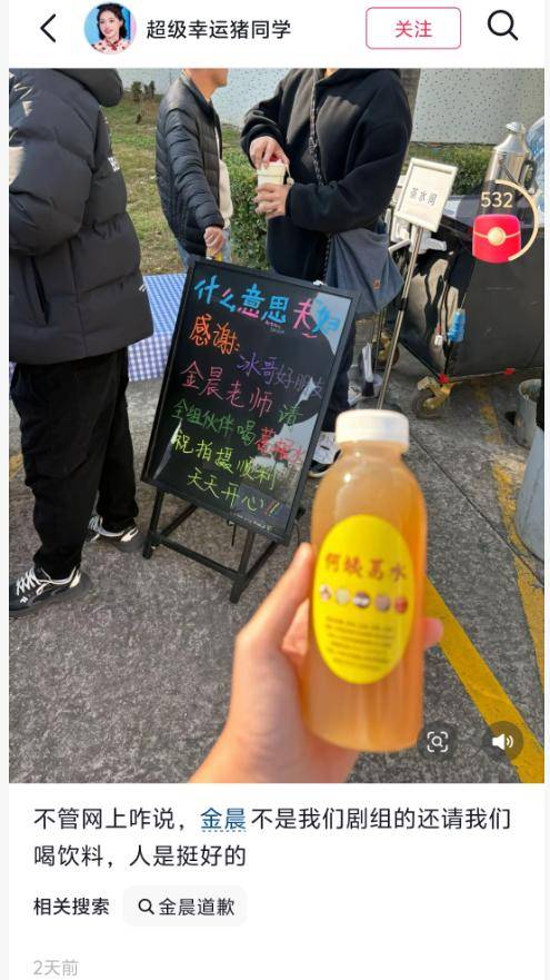 还有一位女演员唐颖琳,也发出金晨请她们剧组喝奶茶的照片,表示当时不是一个剧组的,金晨都这么大方会请他们喝奶茶,觉得单纯从这件事情上能证明她人挺好的。