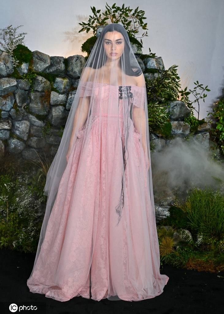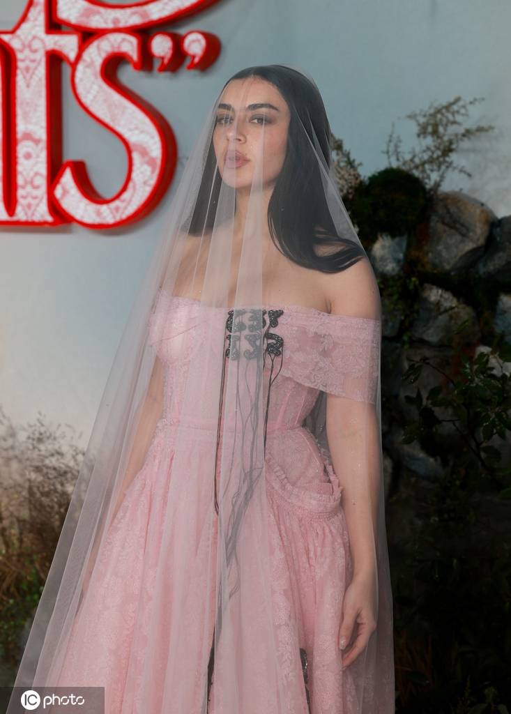当地时间2026年2月5日,英国伦敦,查莉·XCX粉色婚纱造型亮相电影《呼啸山庄》(Wuthering Heights)伦敦首映礼。