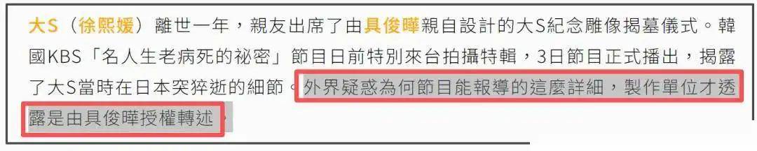 在韩国综艺节目中,具俊晔还谈到了大S的前夫汪小菲,他表示汪小菲并没有尽到作为前夫的责任,没有好好照顾大S,也没有陪伴在她的身边,这一言论也引起了外界的热议和争议。