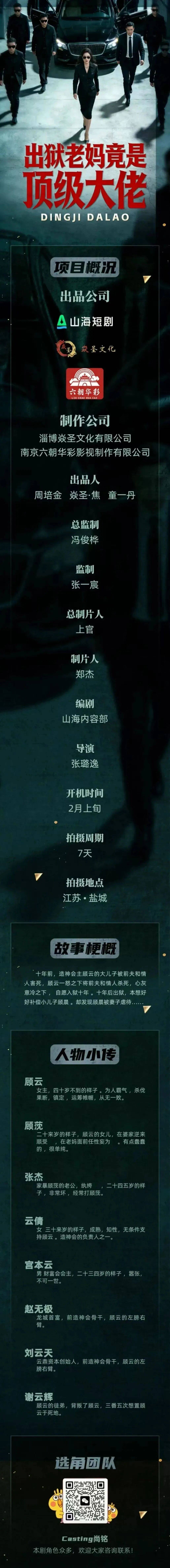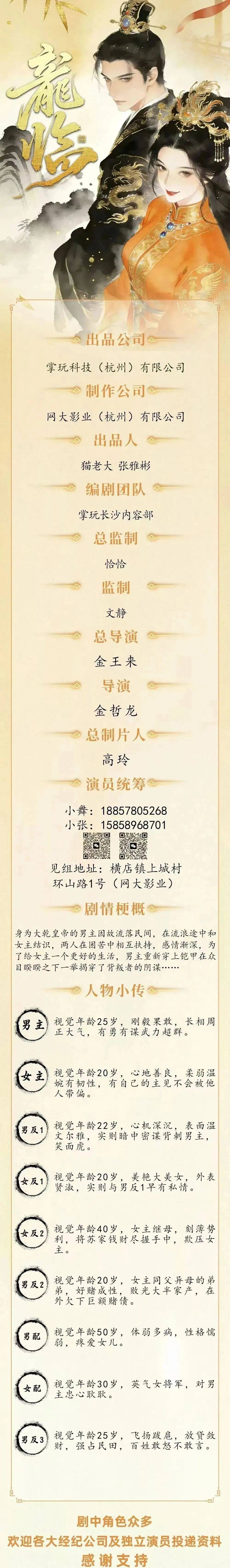 免责声明:戏客Seeker公众号(“本平台”)中全网组讯的信息、内容(“组讯信息”,包括但不限于影视项目名称、项目介绍信息、出品公司信息、导演信息、选角团队信息、拍摄相关信息、联系方式等)均来源于内容信息相关方提供或互联网公开信息。本平台不对组讯信息的真实性、准确性、完整性、及时性、关联性、适用性及安全性提供任何明示或默示的担保。请您谨慎参考或使用组讯信息,并确保您的人身、财产安全,本平台不对您使用或参考组讯信息而造成的后果承担任何责任。