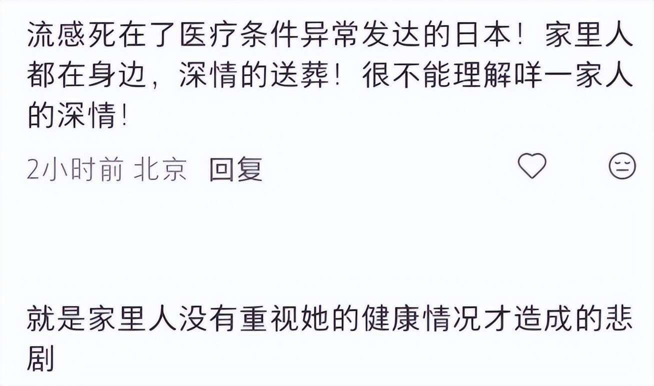 流感初期,她已出现持续的干咳和气促,但她误以为静养就能恢复,甚至在日本酒店里依然坚持泡温泉。病毒已经让她的身体超负荷运转,而高温浸泡会加速血液循环,严重增加心肺的负担。一个本就虚弱的心脏,在高温和高负荷的双重压力下,强行维持供血,而温泉成了压垮她生命的最后一根稻草。