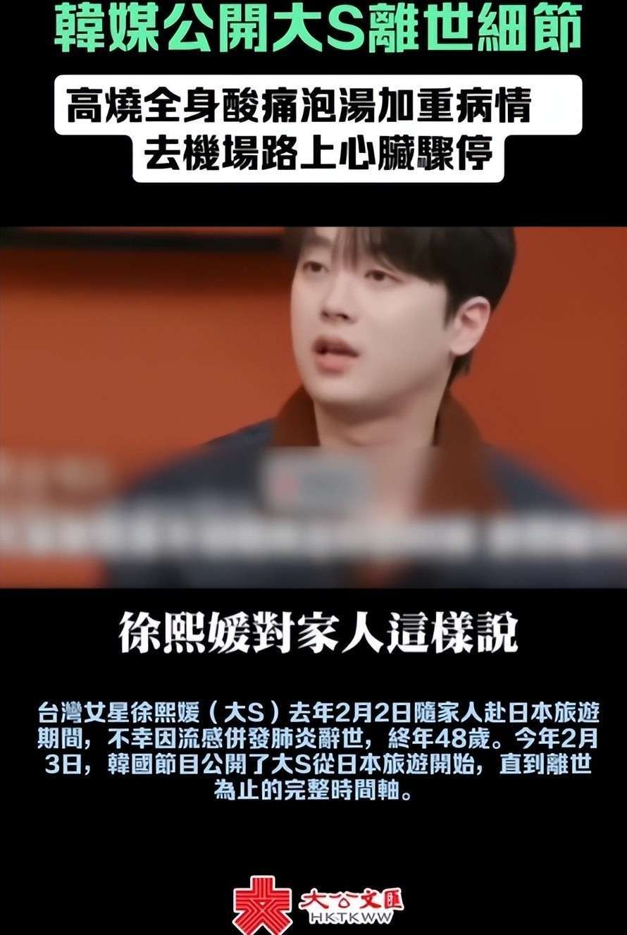 2月3日,韩综《生老病死的秘密》披露:大S在感染流感之前,身体状况已经远低于同龄人的平均水平。特别是她的先天性心脏病,正是她分娩时突发心脏骤停的根本原因。