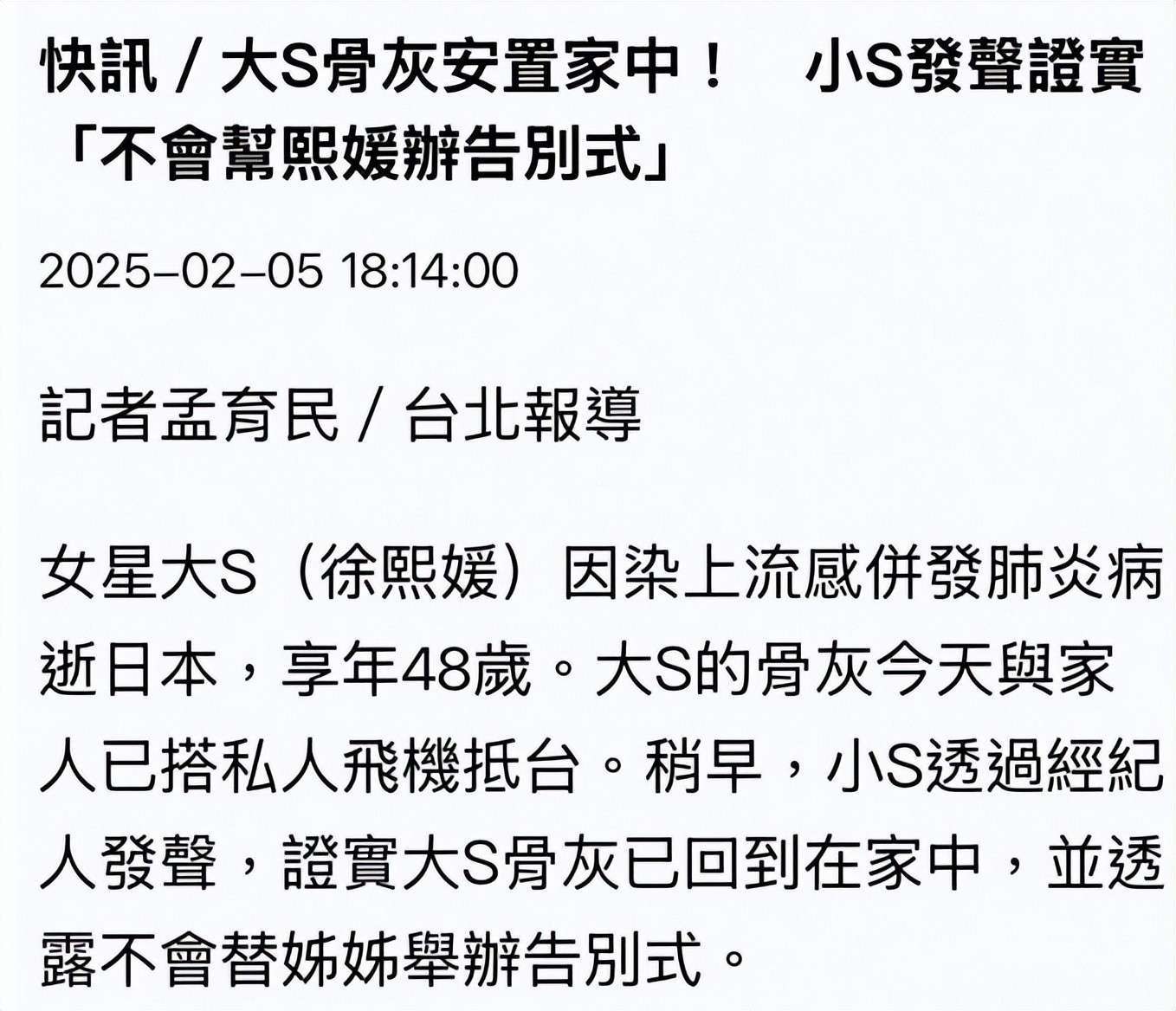 家族的精神支柱轰然倒塌,然而在这场悲剧中,她身边竟然没有一个人可以托付生死。更令人心寒的是,事后小S竟然推诿称一切决定皆遵姐姐意愿,将所有责任悄悄转嫁给大S。旁观者一眼就看清楚了:最辛苦、最隐忍、最牺牲的,从来都是大S一个人。