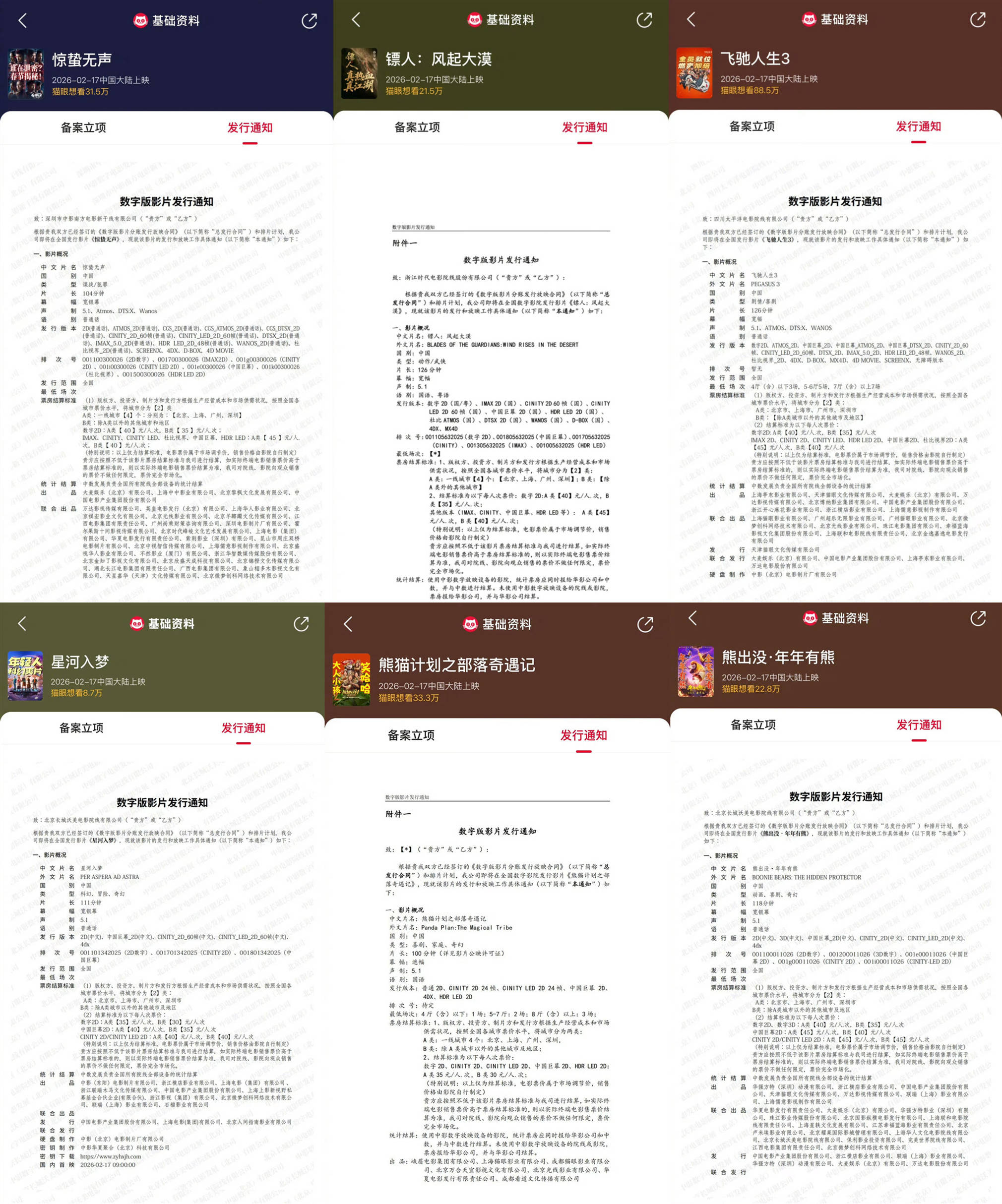 搜狐娱乐讯 2026年春节档预售今日开启,据猫眼专业版信息显示,6部主力影片时长公布,其中《飞驰人生3》和《镖人:风起大漠》以126分钟并列最长,《熊猫计划之部落奇遇记》100分钟最短,整体片长较往年更为精简。