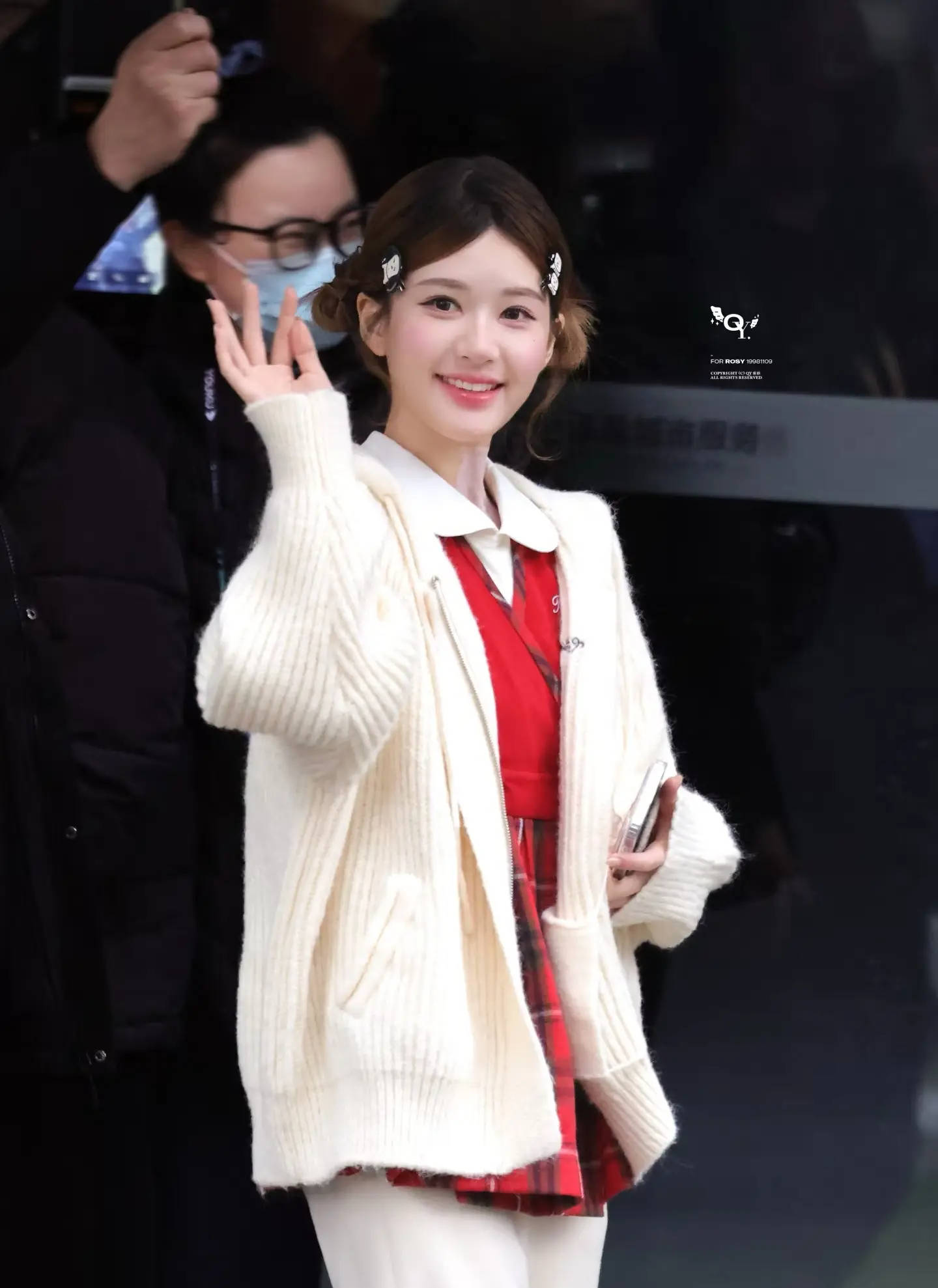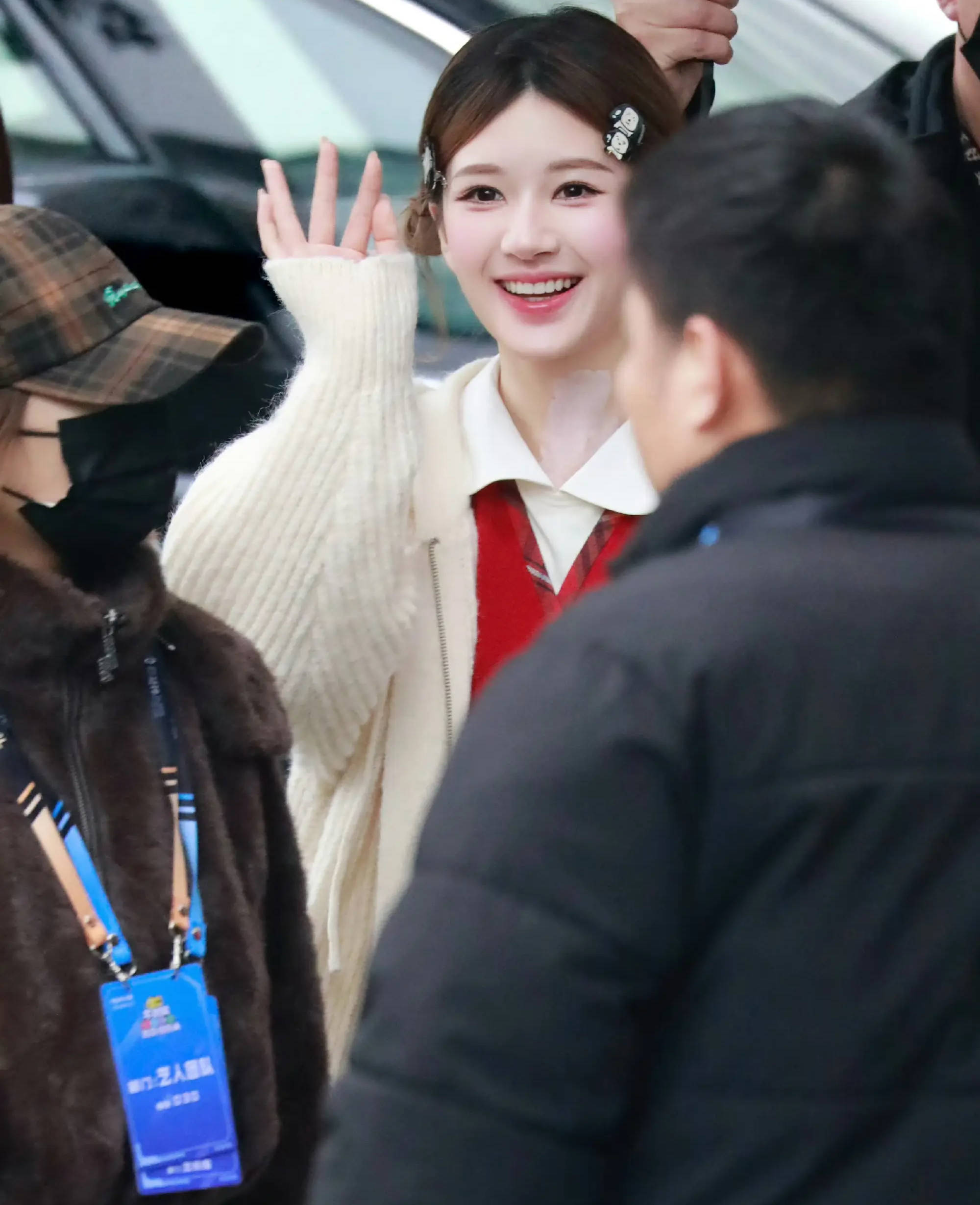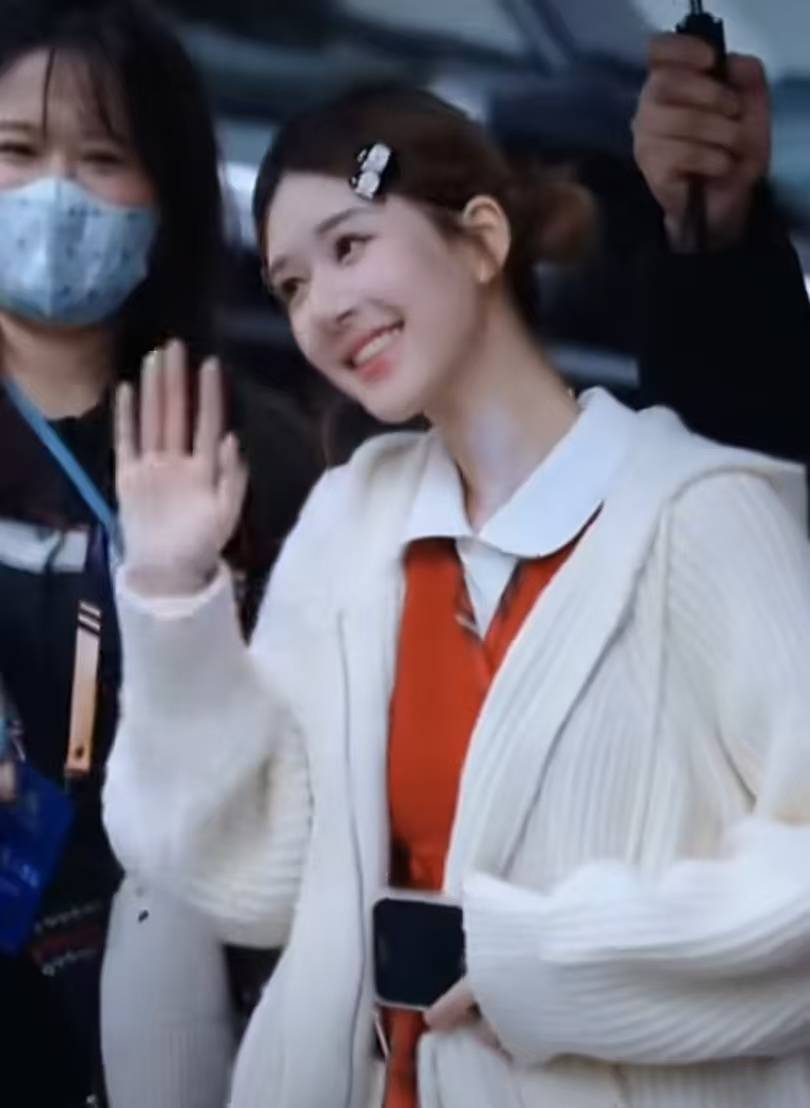 赵露思在人群中挥手,笑容明媚甜度满分。