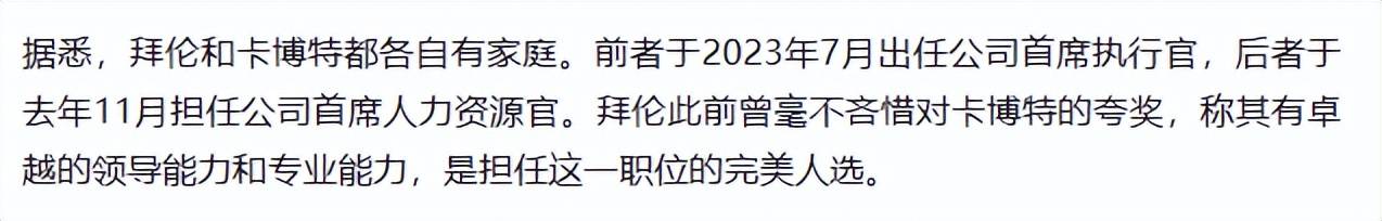 公司调查也显示,没有证据证明两人存在不正当关系。
