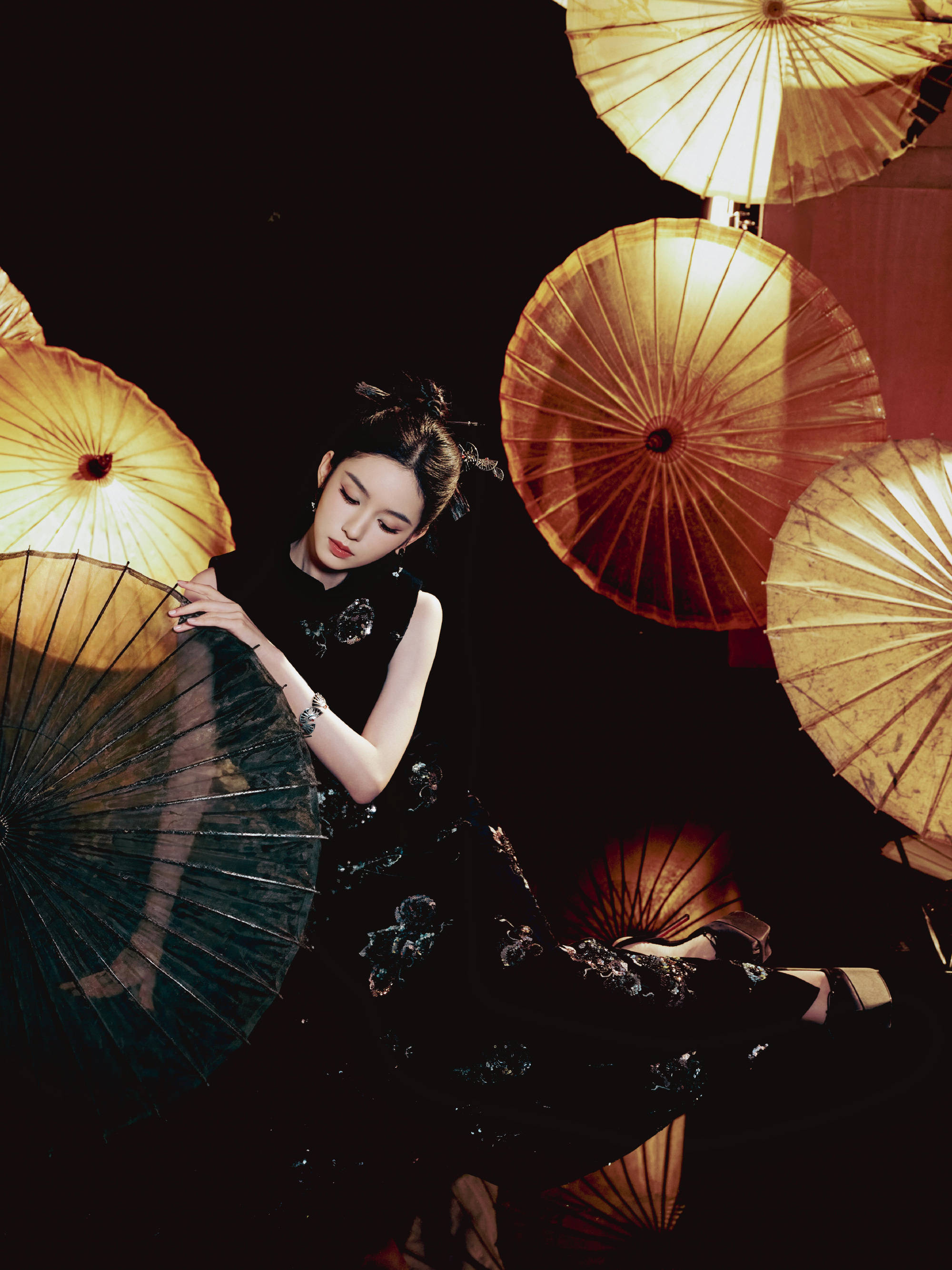 搜狐娱乐讯 近日,周也一组新中式写真曝光,身着黑裙置身伞阵中,尽显东方古典韵味。