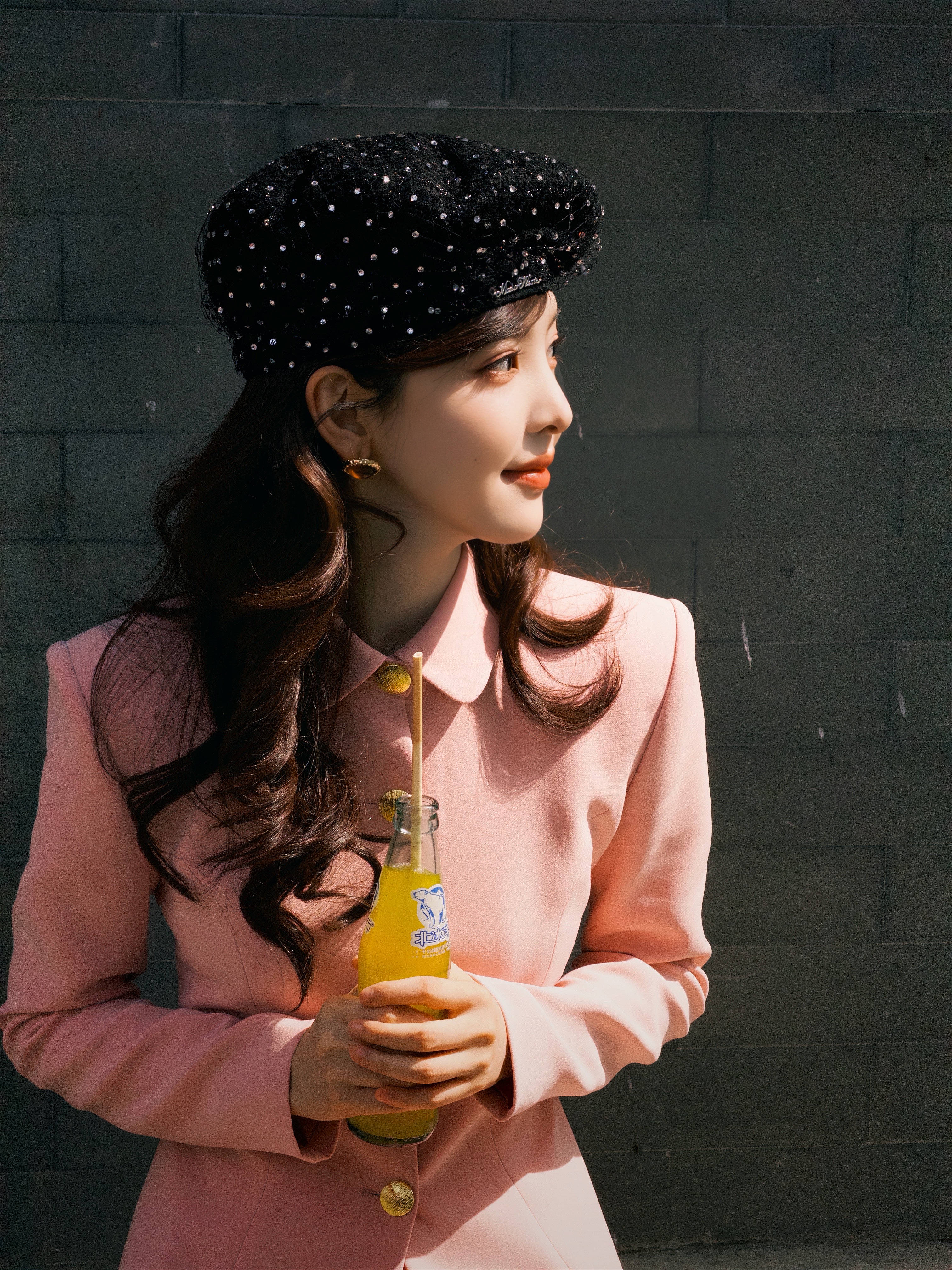 章若楠戴着贝雷帽,优雅阳光。