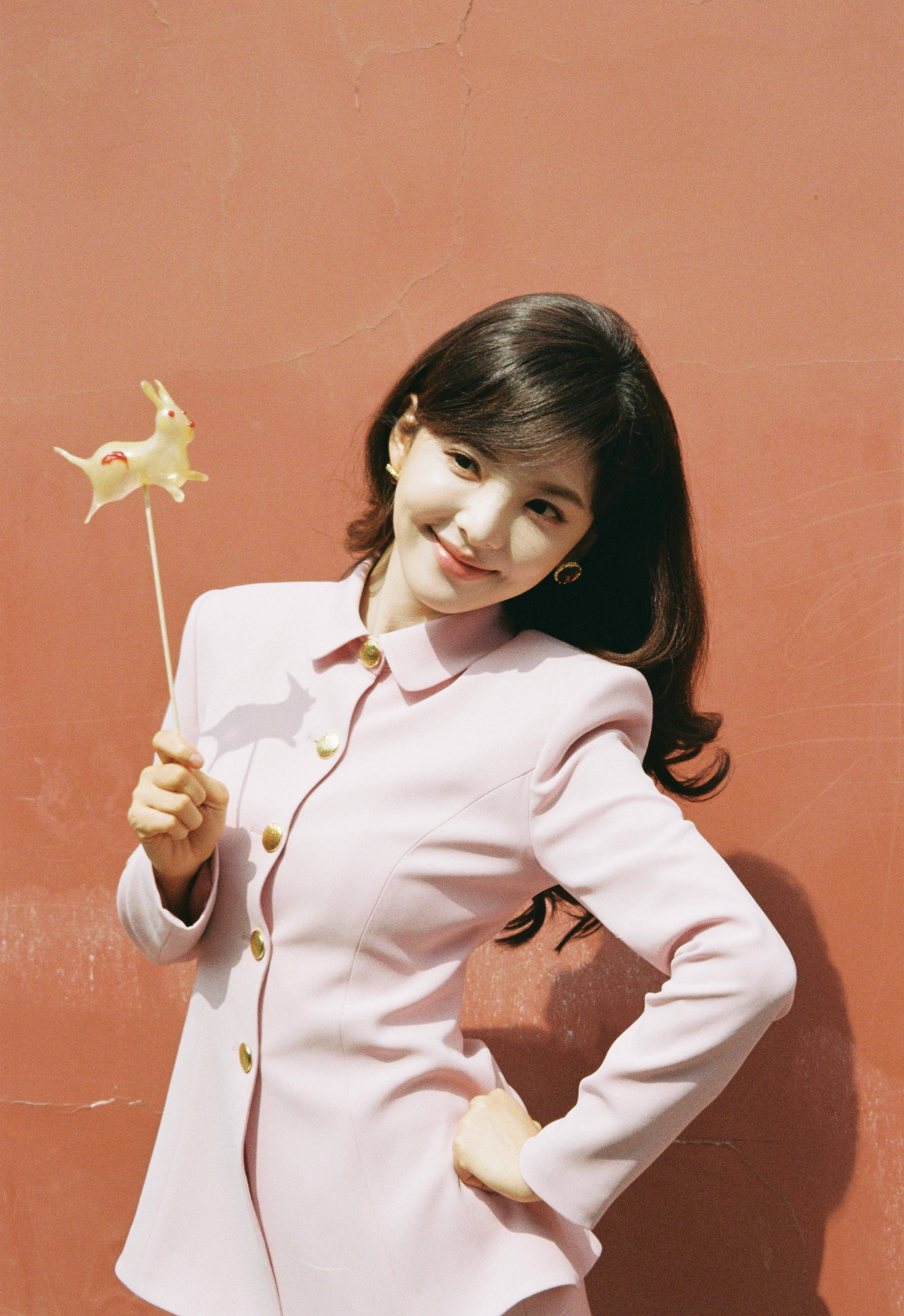 章若楠手持糖人。