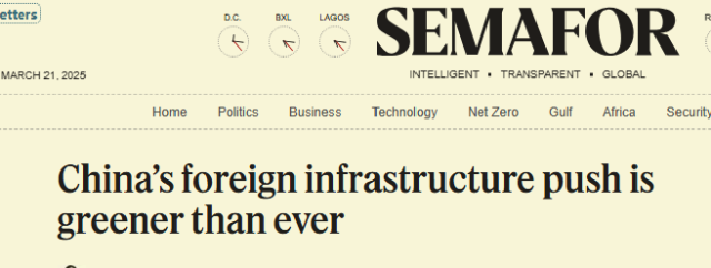 美国新兴新闻机构“旗语”网站近日的一篇报道指出,中国海外基础设施建设比以往任何时候都更加绿色。