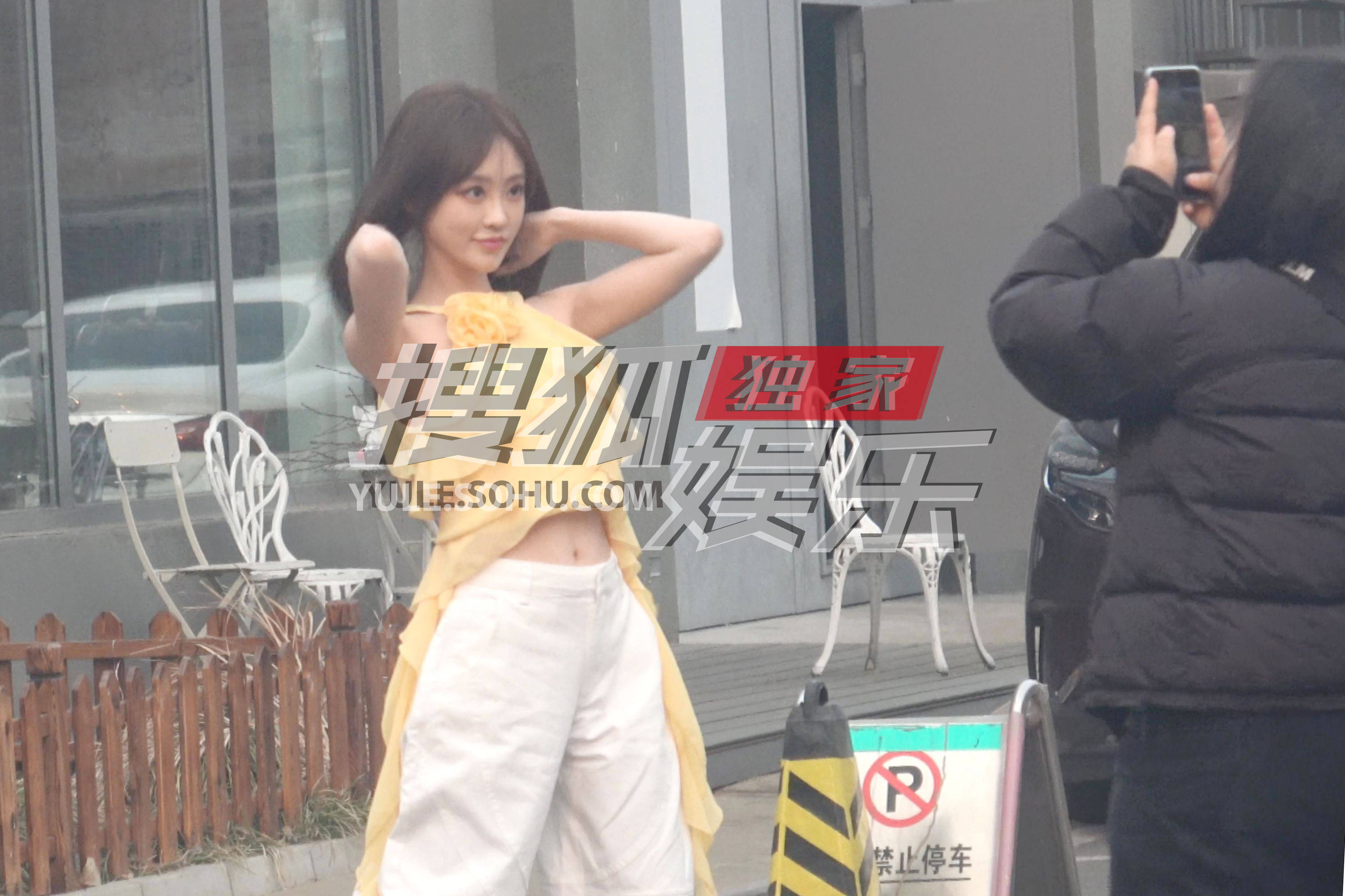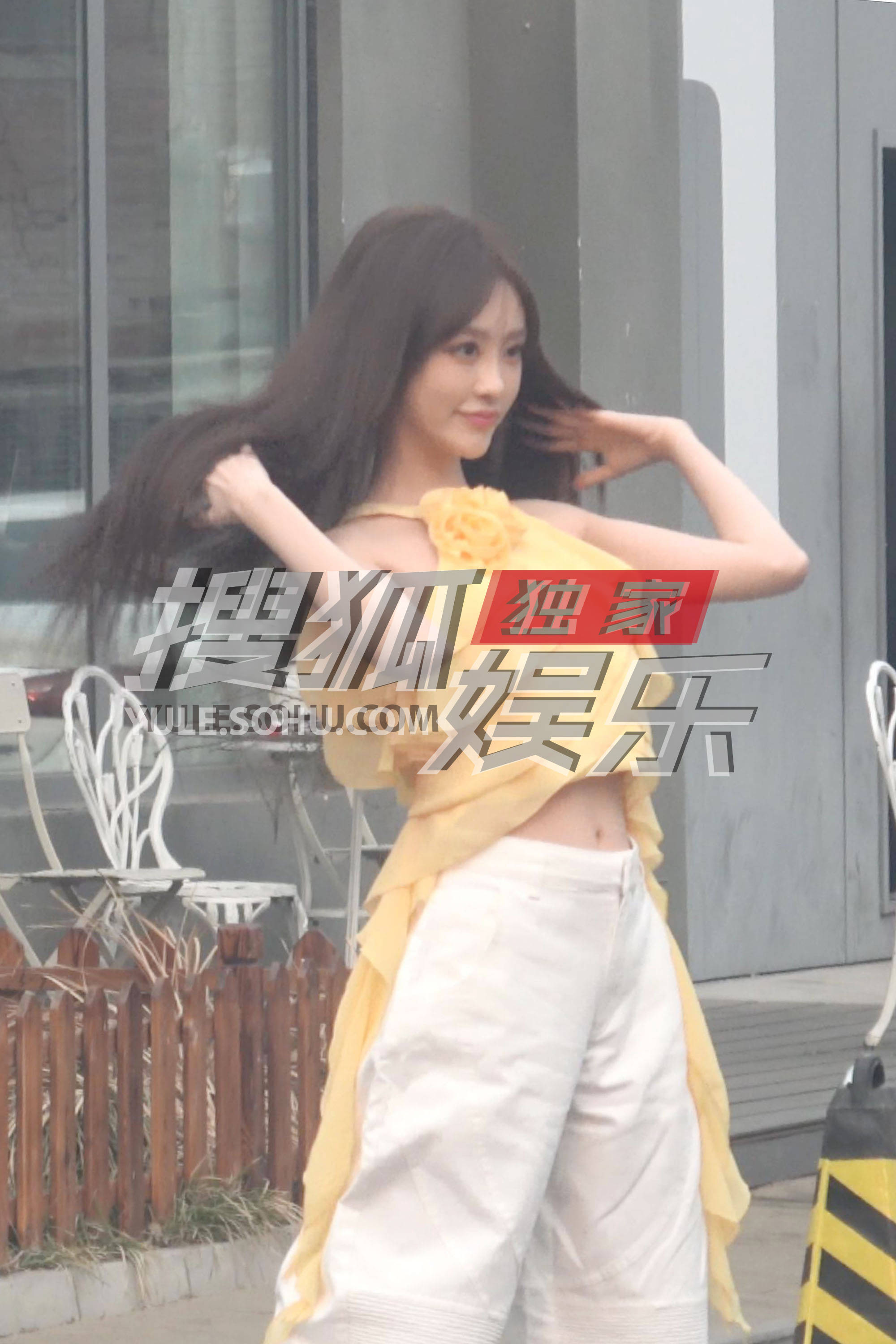开机后,祝绪丹脱下外衣,黄色挂脖上衣特别飘逸。