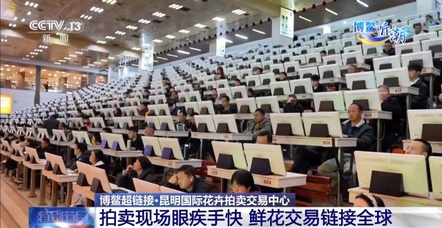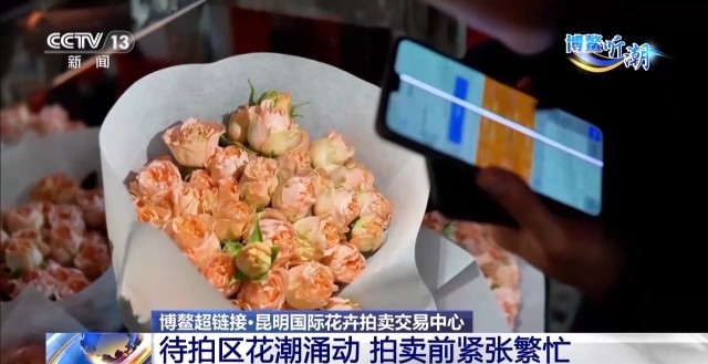 总台记者 伊圣楠:这里的鲜切花拍卖一般是从每天13点开始,持续到17点左右,我们也提前为大家记录了前一天的拍卖现场。