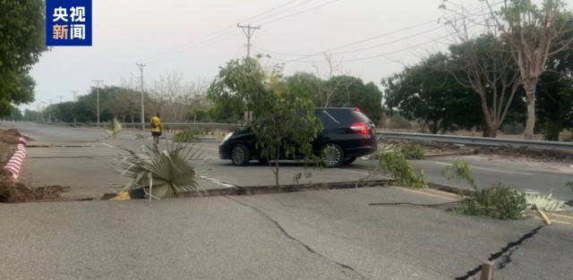△记者前往曼德勒途中发现公路路面发生多处断裂