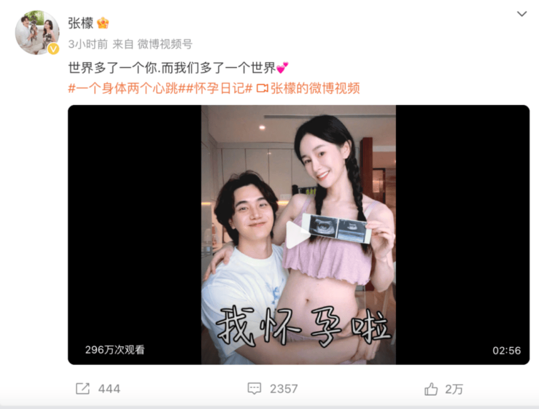 2024年9月30日,张檬晒视频配文“世界多了一个你,而我们多了一个世界”,官宣自己怀孕的喜讯。