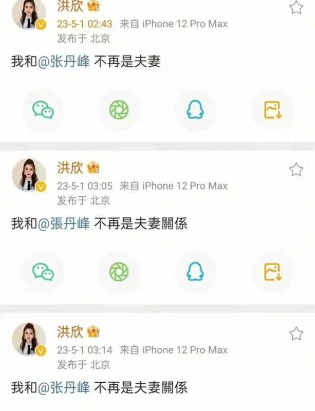 2023年5月1日的凌晨,洪欣在社交平台突然宣布“离婚”,并以一句“不再是夫妻”直接引爆热搜;张丹峰随即回应道:“对,不过了!”还附上一个“笑哭”表情包,搞得网友一头雾水。