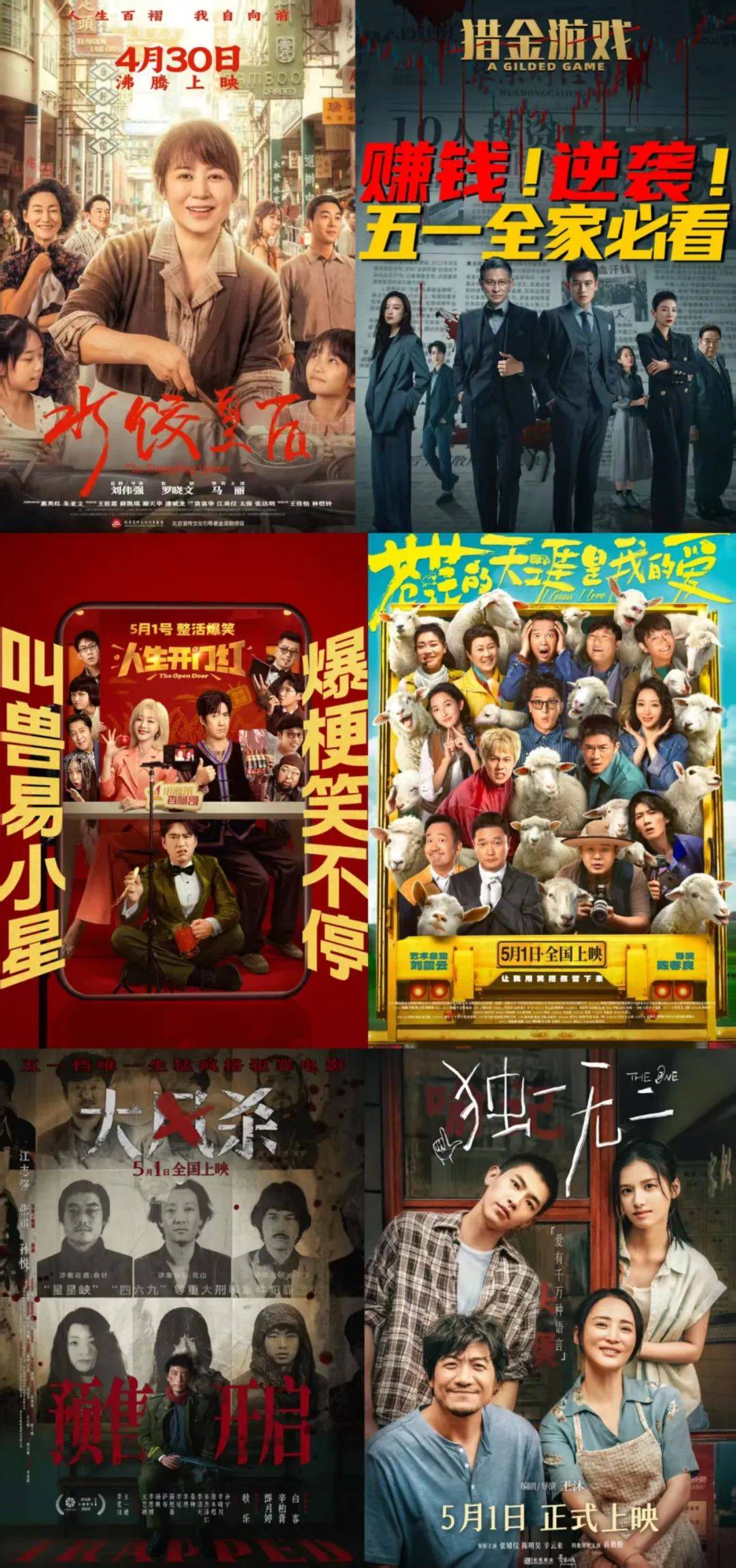 其中六部国产片,包括刘伟强执导、马丽主演的“湾仔码头”创始人传记片《水饺皇后》,易小星执导的喜剧《人生开门红》,“凤凰传奇”成员曾毅主演的公路喜剧《苍茫的天涯是我的爱》,刘德华和欧豪主演的金融题材电影《猎金游戏》,白客和辛柏青主演的西部警匪片《大风杀》,以及张婧仪主演的“中国版《健听女孩》”《独一无二》。