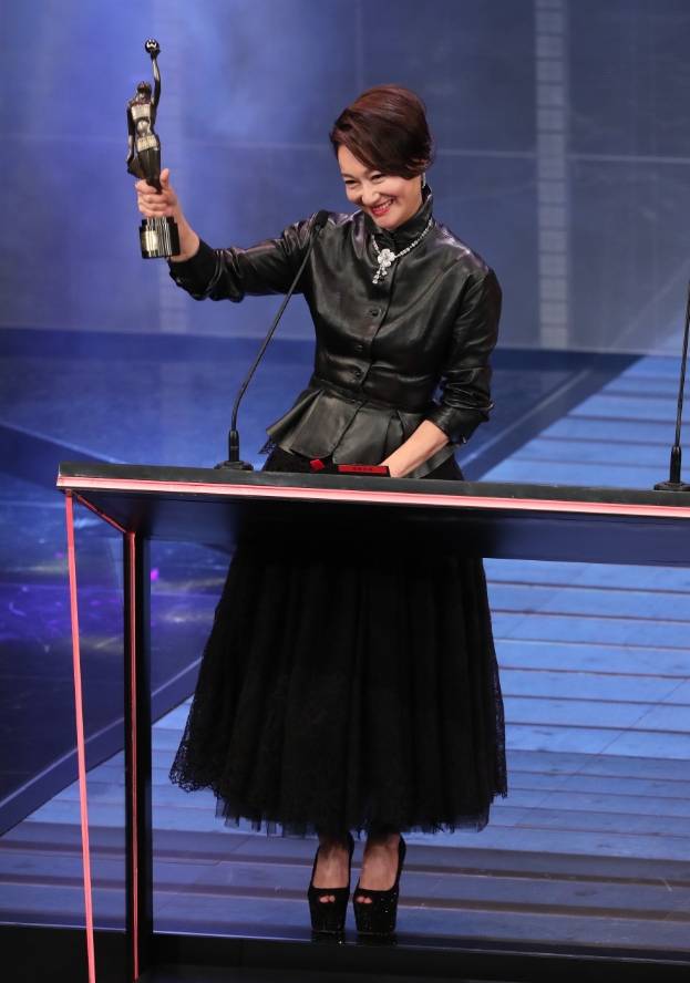 1982年曾经摘下金像奖第一届“影后”奖杯,惠英红在此前与金鸡奖擦肩而过后,凭借《我爱你》终于摘下华表奖优秀女演员奖杯,也成为获得该奖项的首位香港女演员。