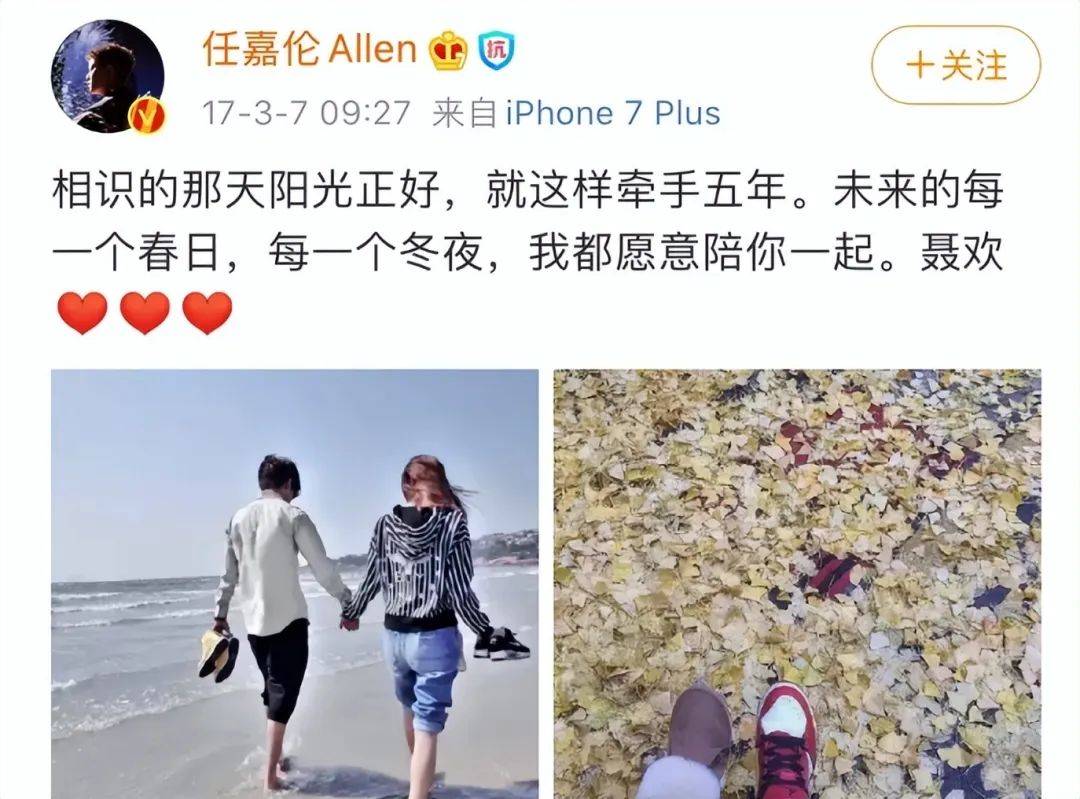 2017年,恋爱5年后,任嘉伦在网上突然公开了和女友聂欢的恋情。