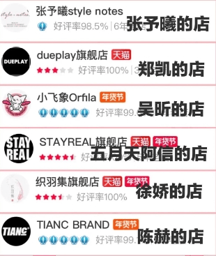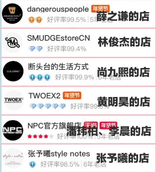 某宝随手一搜就都是明星或者和明星有关联的店铺。