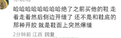 还不是鞋底的那种开胶,是鞋面缝合的那里突然爆开了。