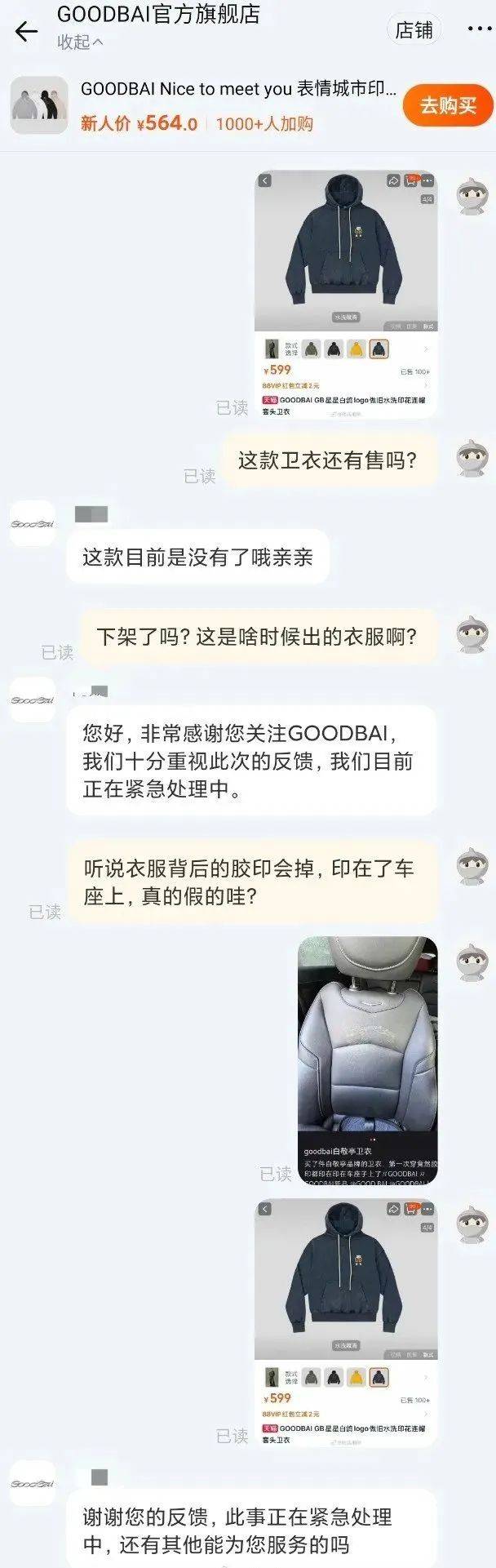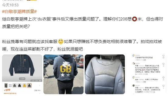 有网友发帖吐槽他的个人品牌good bai 衣服质量不行。