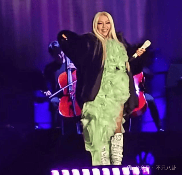 其中,一张天后穿着绿裙子披着绒外套的照片引发了吃瓜人热烈讨论↓