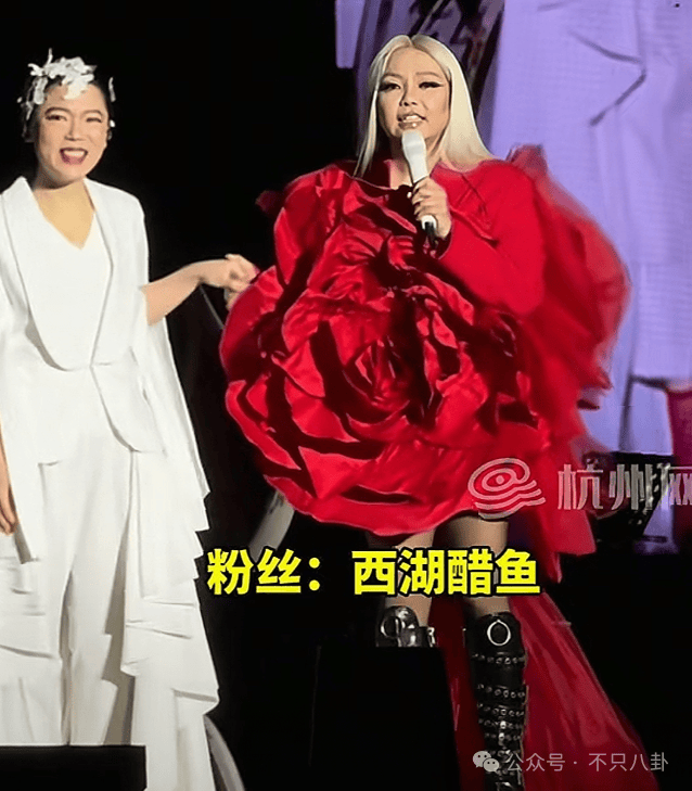 还有不少歌迷澄清,称当天杭州晚上气温有点低,阿妹冻到流鼻涕了,现场征求歌迷同意后就披了件黑色绒外套↓