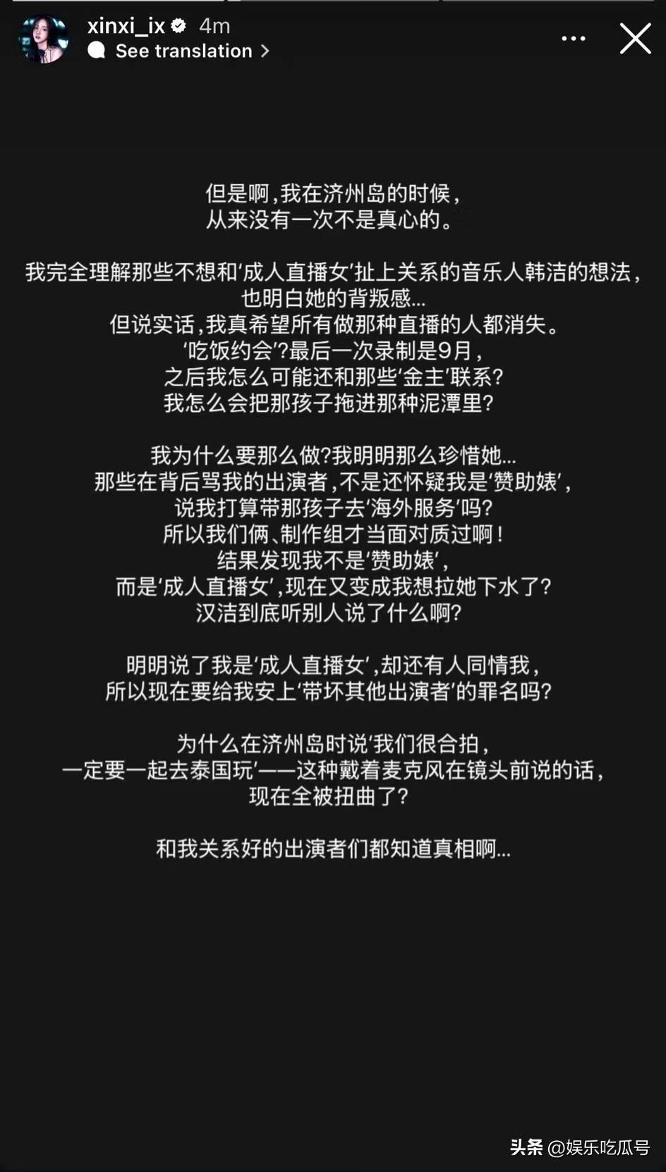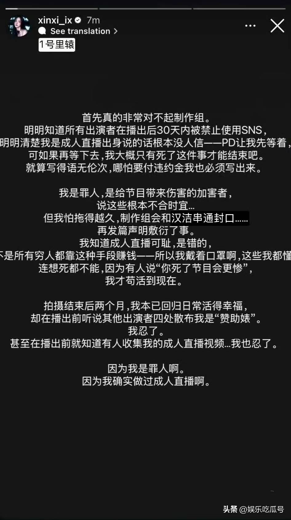 女一号也表露出自己的内心挣扎,承认受到过无数谩骂,曾因往事被恶意搜索,几乎无法承受。然而,为了澄清事实,她一直坚持到现在。她声称会从韩国媒体上彻底消失,但不久后却被爆出私密联络中国粉丝,注册了小红书和微博,强调自己虽然有过那样的职业经历,如今已痛改前非,并绝对不会去伤害任何无辜的女性,始终坚守“保护女生”的原则,希望粉丝给予她信任。