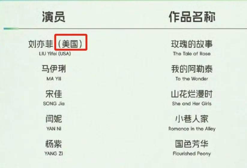 相比于马伊琍、宋佳和闫妮这三位有力竞争者,大众对于其他两位得奖的呼声并不高。当提名名单公布,大家第一眼就看到了刘亦菲名字后面显眼的“美国”二字,此前她就因为国籍问题屡屡陷入争议,甚至被群嘲。这一回,大家看到名单之后也直呼“括号里的美国好滑稽、太难看”。