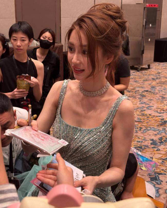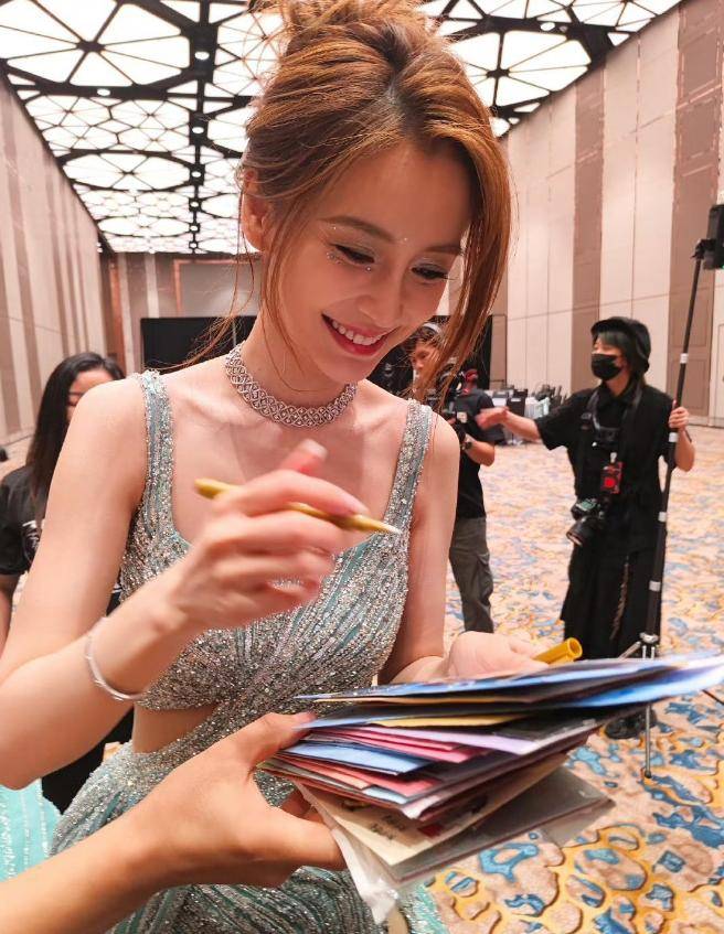 她会认真聆听每一位粉丝给她讲话,而且她也真诚的做出回应,签名照一张一张的向前递,她只要看到也会一张一张仔细的签,且旁边工作人员一直在催她离开去拍摄了,她没有动摇,而是停留在原地和粉丝继续互动。