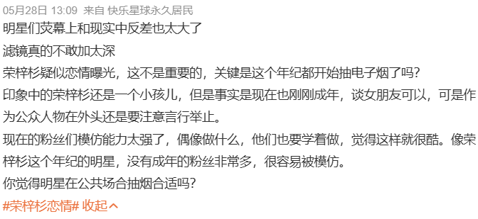 但因为童星出身,在很多网友眼里荣梓杉其实还算个孩子。