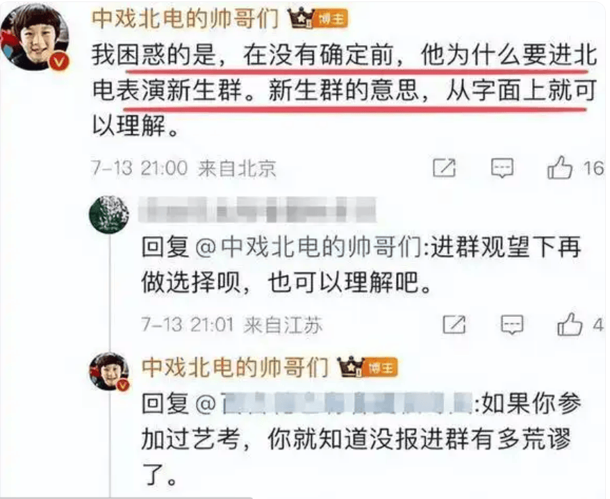 反正怎么看都没有一个年轻演员和一个中戏学子该有的谦卑。