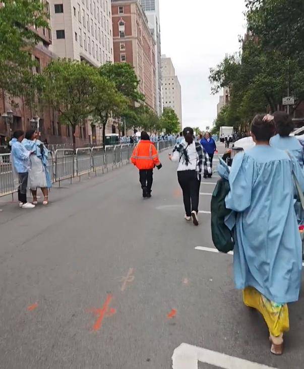 虽然画面内外透着股“野生感”,但还是能感受到一个父亲参加女儿毕业典礼的紧张与激动。