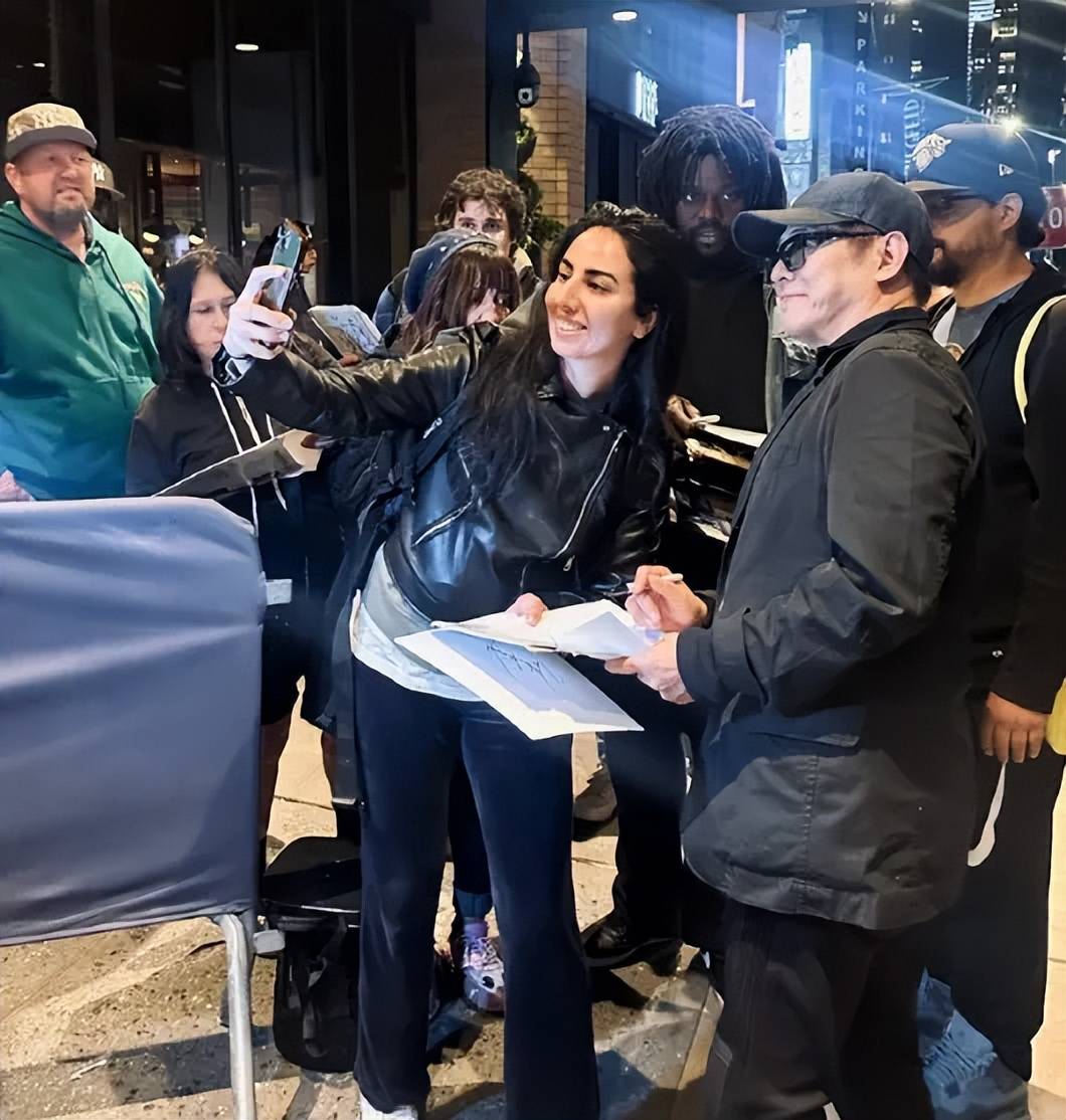 此外,在外出时遇到粉丝要求合照、签名,李连杰也是欣然接受。