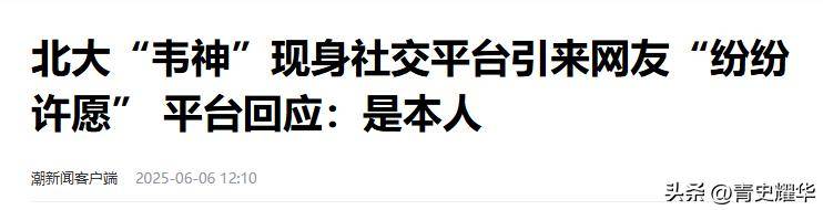 北大“韦神”现身社交平台引来网友“纷纷许愿” 平台回应:是本人——潮新闻客户端