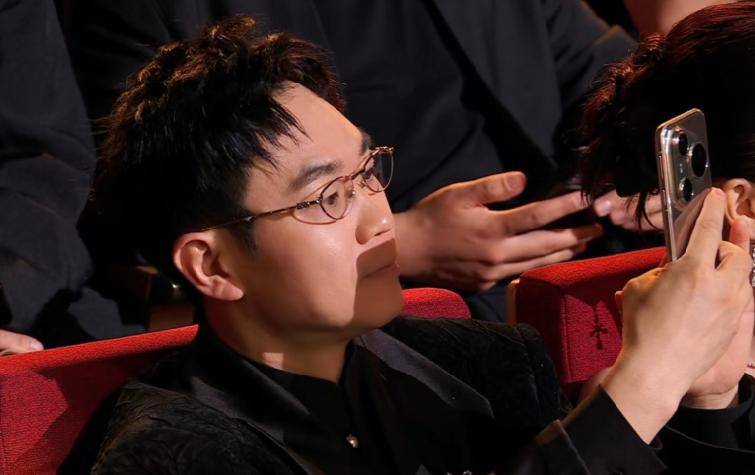 但尴尬的是,邓超和黄晓明这两位“中国合伙人”坐在一起似乎没什么共同话题,两人虽然有对视,但基本没交流,同框画面看上去气氛也很微妙。