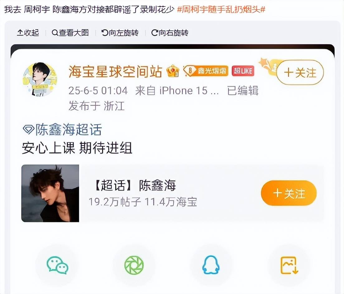 此外,还没官宣,张晚意和龚俊的粉丝已开始互撕,甚至有部分龚俊粉丝要求节目组换掉张晚意。有消息说,可能会换成周柯宇或陈鑫海,但这两位也已辟谣。