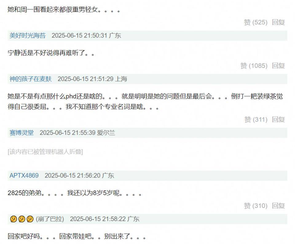 不过,这一次讨论的焦点,显然还是回到了朱丹身上。老实说,像她这样毫不自觉流露出重男轻女想法的人实在不少,尤其在农村,许多女性从小就受到这样的不公对待,长大后依然继承了这样的观点。从小在这种环境中长大,往往使得她们在面对男性时必须低三下四、讨好奉承。这在朱丹看来,男生理应比女生获得更多的关注和利益。