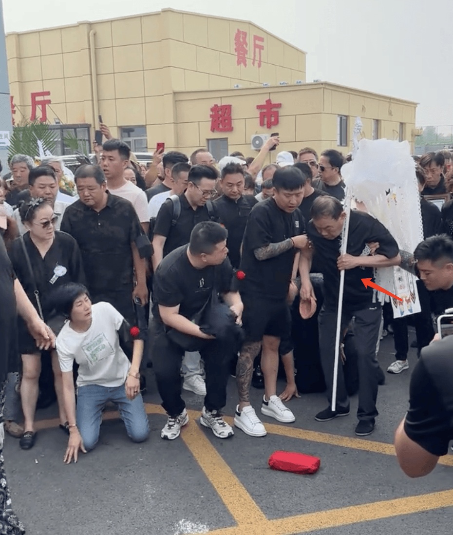 据悉,杨少华的遗体告别仪式选择了上午9时,在灵堂拜完杨少华遗体后,众人将杨少华的棺材抬出了灵堂,作为杨家的长子,杨威承担起了摔盆打幡的工作,只见杨威站在过道一边,因为这几天过度悲伤与操劳,已经站不稳了,旁边的亲友一直搀扶着他。