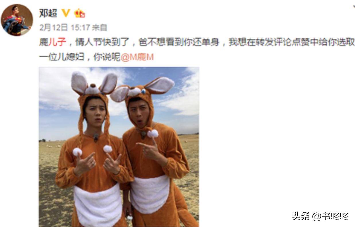 邓超与鹿晗的关系非常亲密,二人因《跑男》结下了深厚的友谊,邓超更常以“我儿子”称呼鹿晗,节目中的互动宛如父子般温暖。而在2025年鹿晗的演唱会巡演期间,邓超也到现场为他加油打气,还送上了充满祝福的花篮,并在微博上大力宣传。