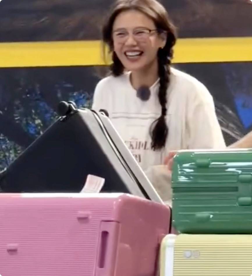 从路透照片看,那英推着行李、帽子低压,长发凌乱,穿着工装裤配便装外套,完全是一副“来打工”的模样。当其他嘉宾都在拍照美颜时,她却搞笑地演绎了一场“行李坍塌事故”,张大嘴、一脸懵,仿佛在拍小品。