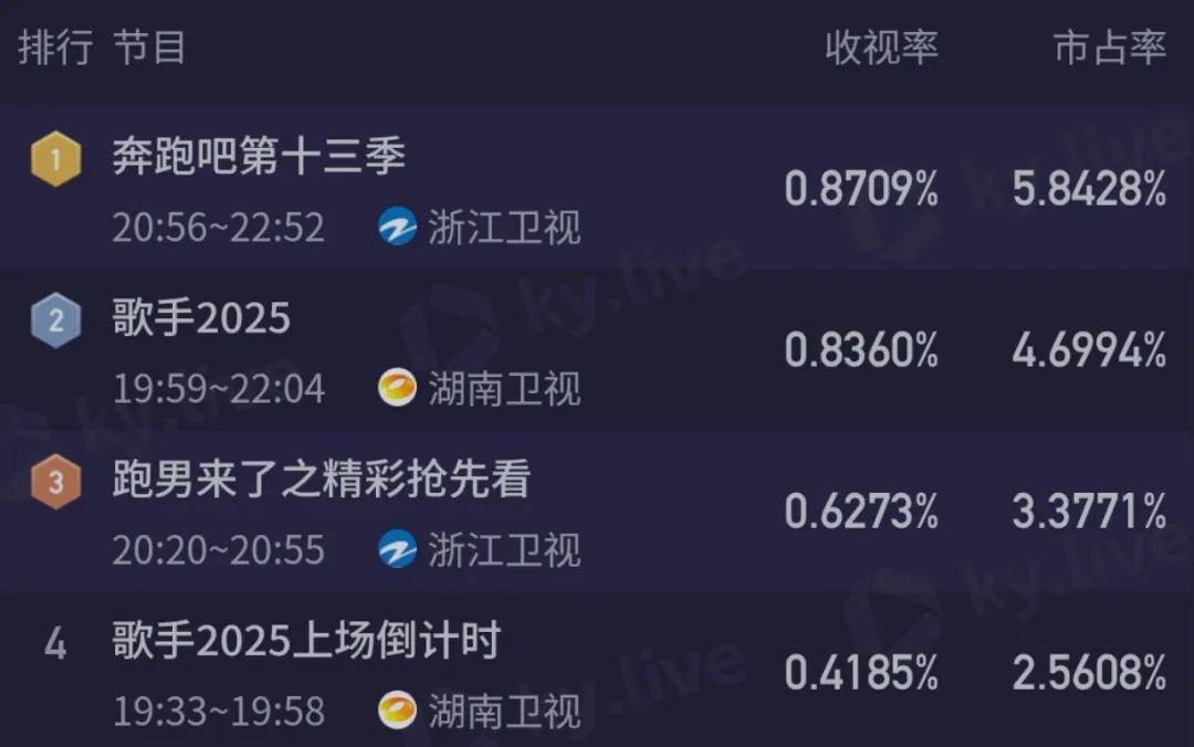 最近《奔跑吧》和湖南台综艺《歌手》对打,不仅直播收视稳压一头,而且已经连续六周拿下同时段卫视直播收视第一了,最新一期节目收视更是创下新高,平均收视突破了0.87%。