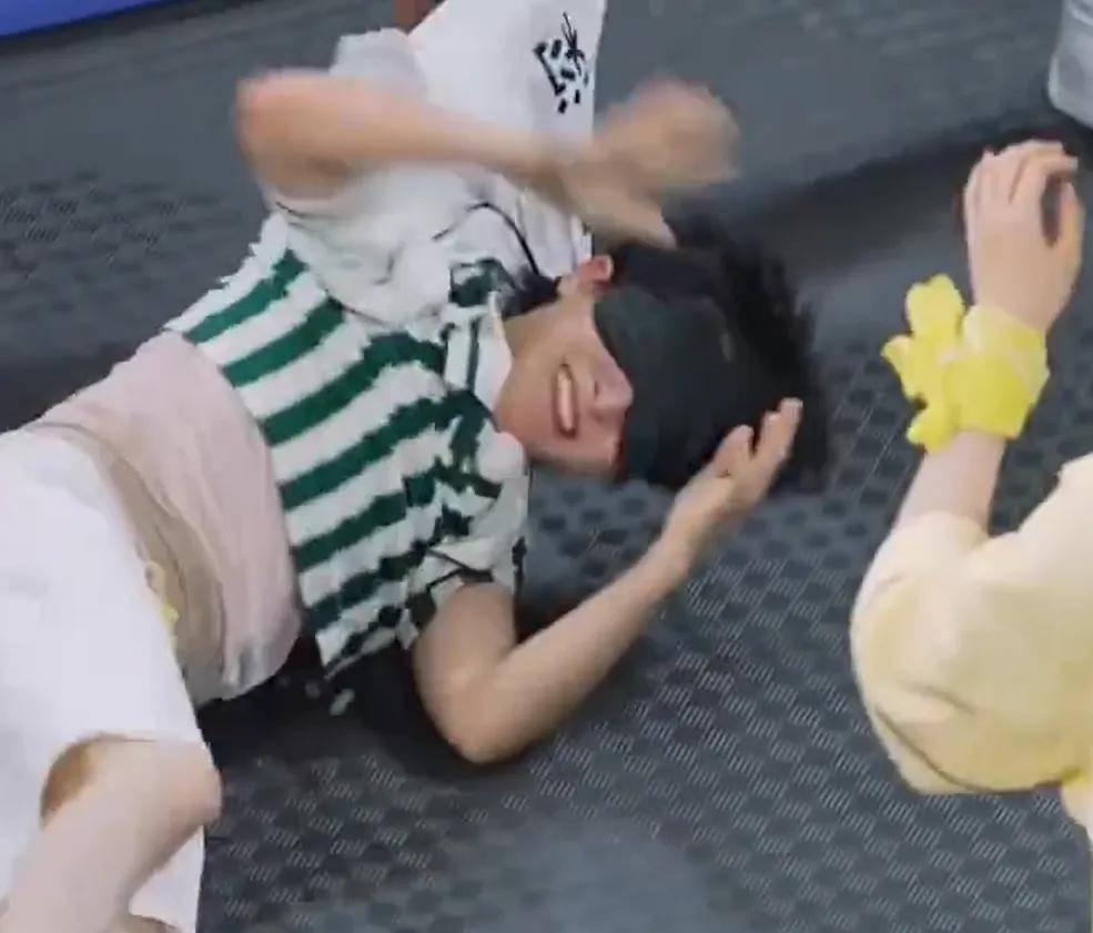 郭艾伦更是没有手下留情的意思,周深为了护住名牌躺在地上,他抬手就把周深拎了起来,周深扭动身体试图逃离,但毫无作用,身体半悬空旋转了一圈,只能试图继续躺在地上保护名牌。