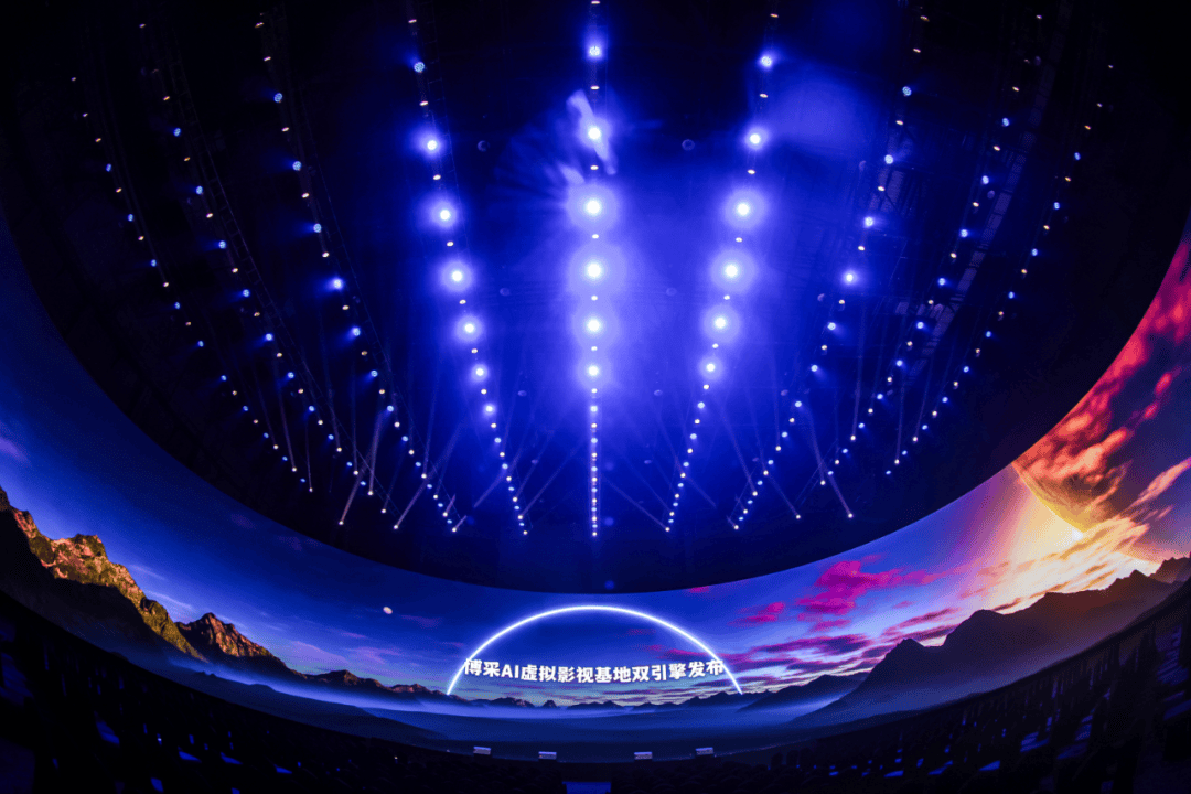 除了LED虚拟影棚之外,基地里还配备了一座实体棚、两座实时高速预演棚、AI制作中心,以及满足15亿像素实时渲染的算力中心,再加上博采自主研发的虚拟制片系统、自动化软硬件矩阵、自有版权的超十五万件高精度数字资产库,构建了一个真正智能化、全链路打通的创作平台。