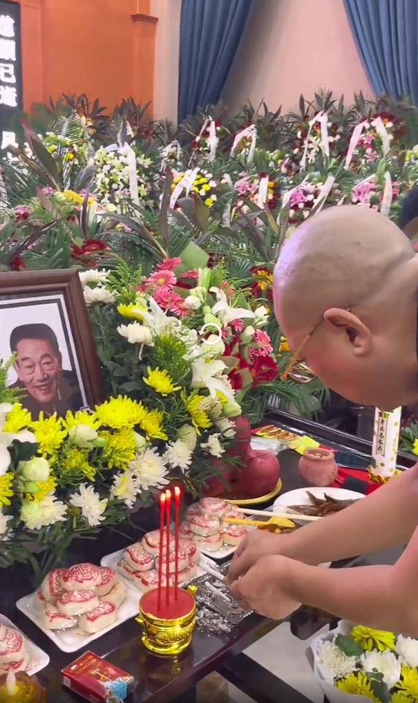 起身之后,汪洋指着杨老的遗像,情绪激动的大喊“老头啊,我好好哭哭哭你啊”。