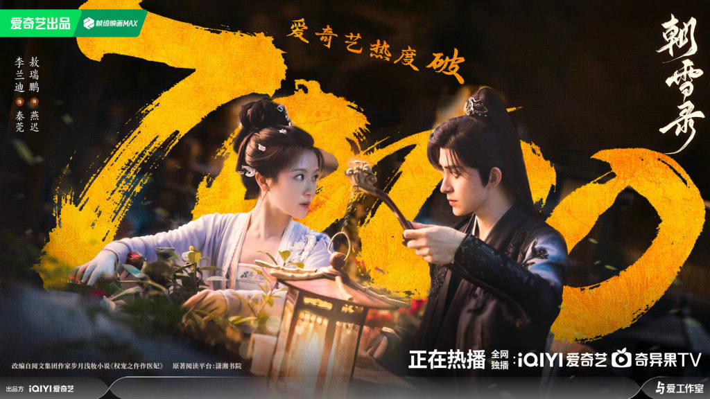 7月13日,开播首日,《朝雪录》在爱奇艺站内热度值达7000。