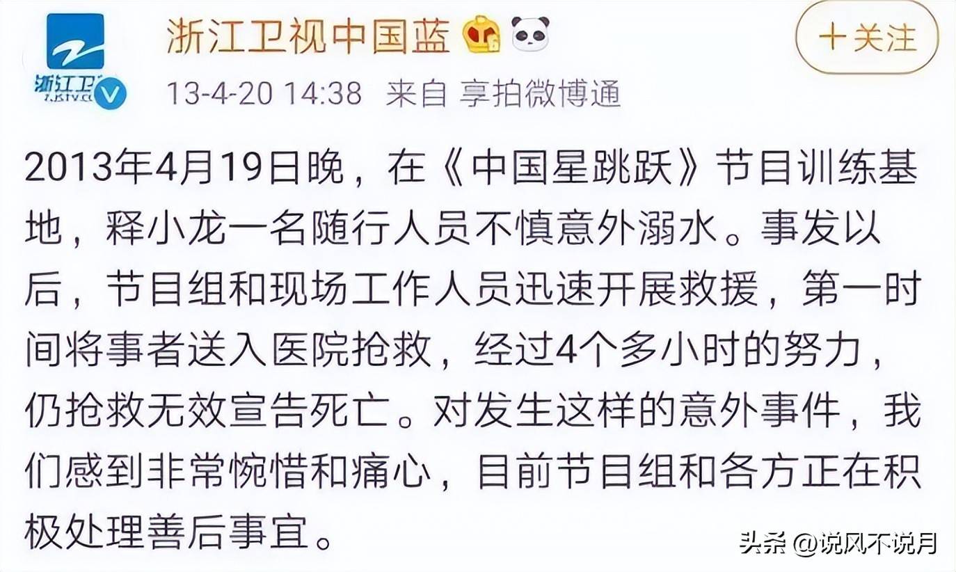 例如,2013年2月,浙江卫视推出了跳水节目《中国星跳跃》。释小龙为追求更高的曝光率,特地带上了自己的助理,原本是想通过这一节目增加人气,结果却因一场悲剧失去了助理的生命。当时,助理从三米高的跳水台跳下时,现场竟然没有配备救生员。最终,当救援人员意识到问题的严重性时,这名助理已经不幸离世。虽然浙江卫视事后声称他们已尽力抢救,甚至花了四小时进行紧急施救,但如果当初安排好必要的安全保障,事情是否能避免呢?